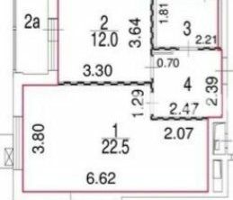 Комната - 22,5 кв.м., кухня 12.0 кв.м. Высота потолков 2,7 м.