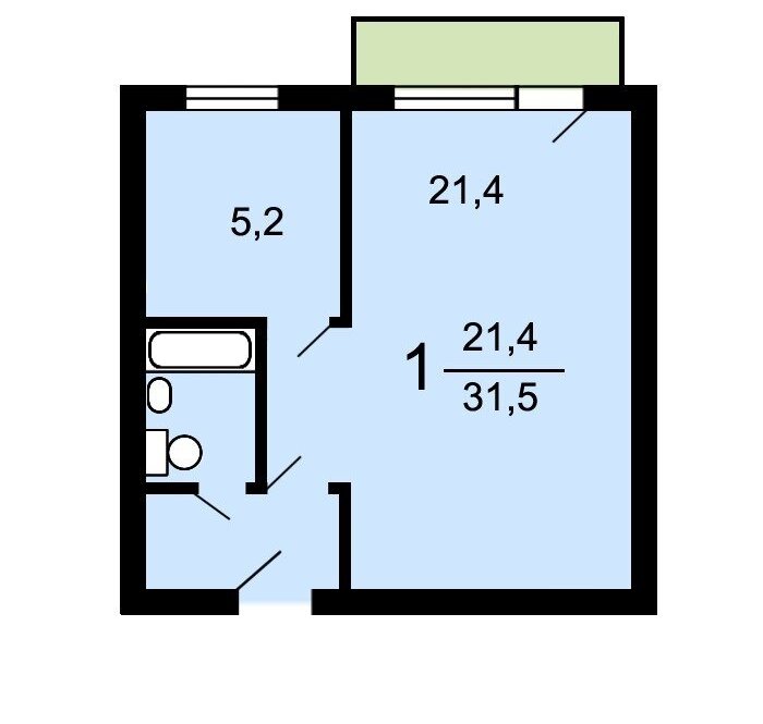 - Количество балконов/лоджий: 1