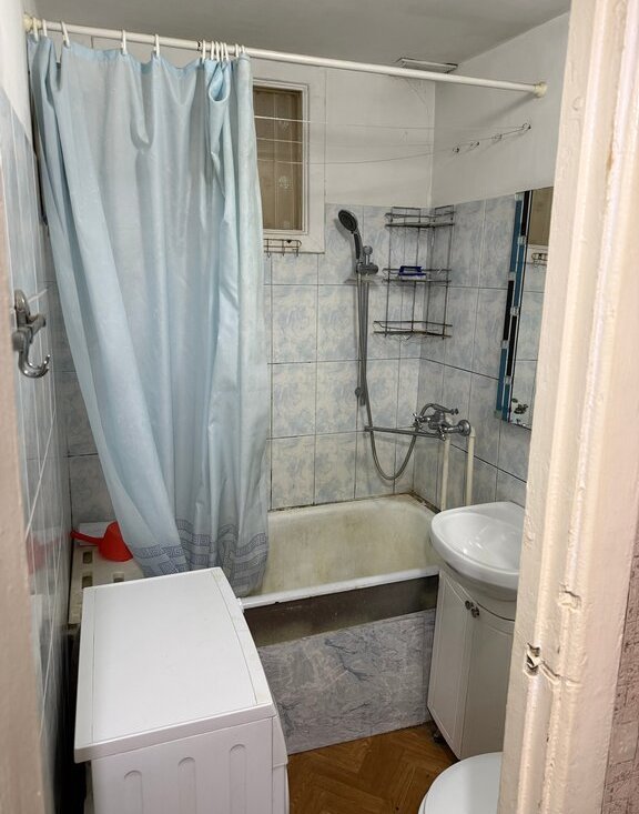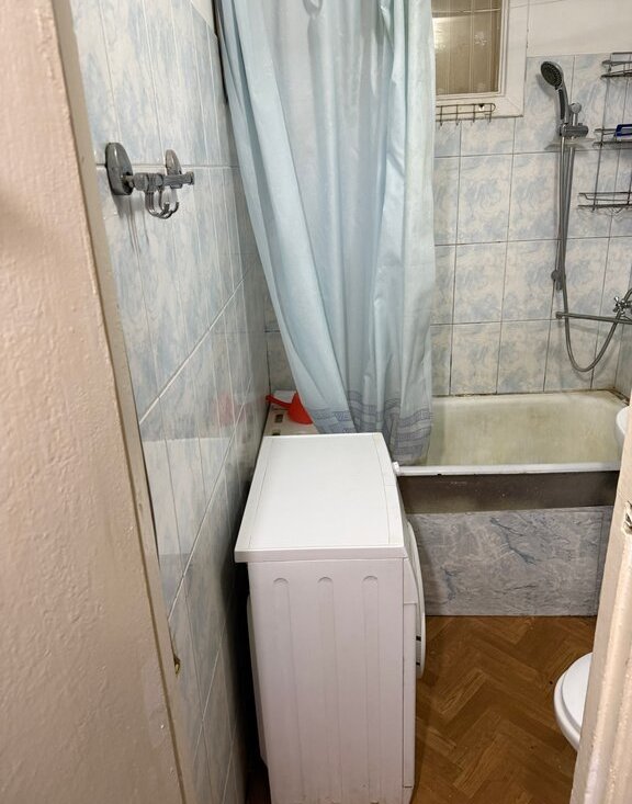 Для вашего удобства установлены холодильник и стиральная машина. Санузел совмещённый, с полноценной ванной. Несмотря на отсутствие ремонта, квартира оснащена всем необходимым для комфортного проживания.