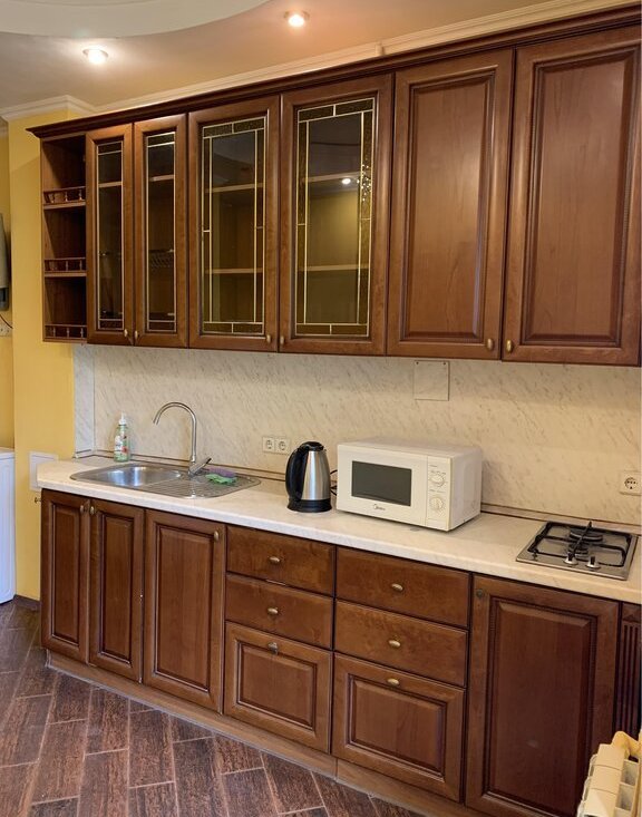 Квартира оборудована всем необходимым для комфортной повседневной жизни - встроенная кухня с техникой: холодильник, варочная панель, духовой шкаф, микроволновая печь и стиральная машина. Застекленная лоджия. В комнате большая кровать. Просторный сан. узел с душевой кабиной. Добропорядочные соседи по этажу.