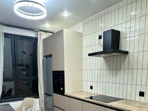 В квартире выполнен дизайнерский ремонт, который создает атмосферу уюта и комфорта. Просторная гостиная, совмещенная с кухней, позволяет удобно зонировать пространство. Кухня полностью оборудована: есть холодильник, посудомоечная и стиральная машины. В квартире всегда светло и тихо.