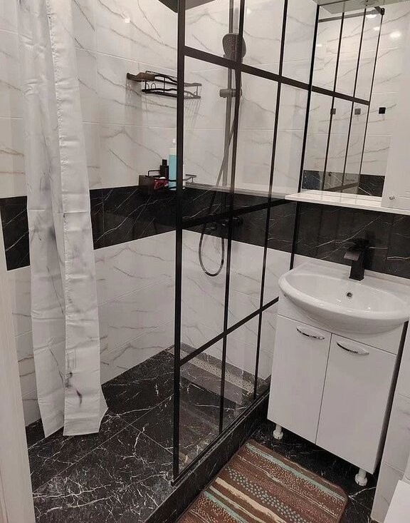 -просторный сан. узел со стиральная машинка с функцией сушки.