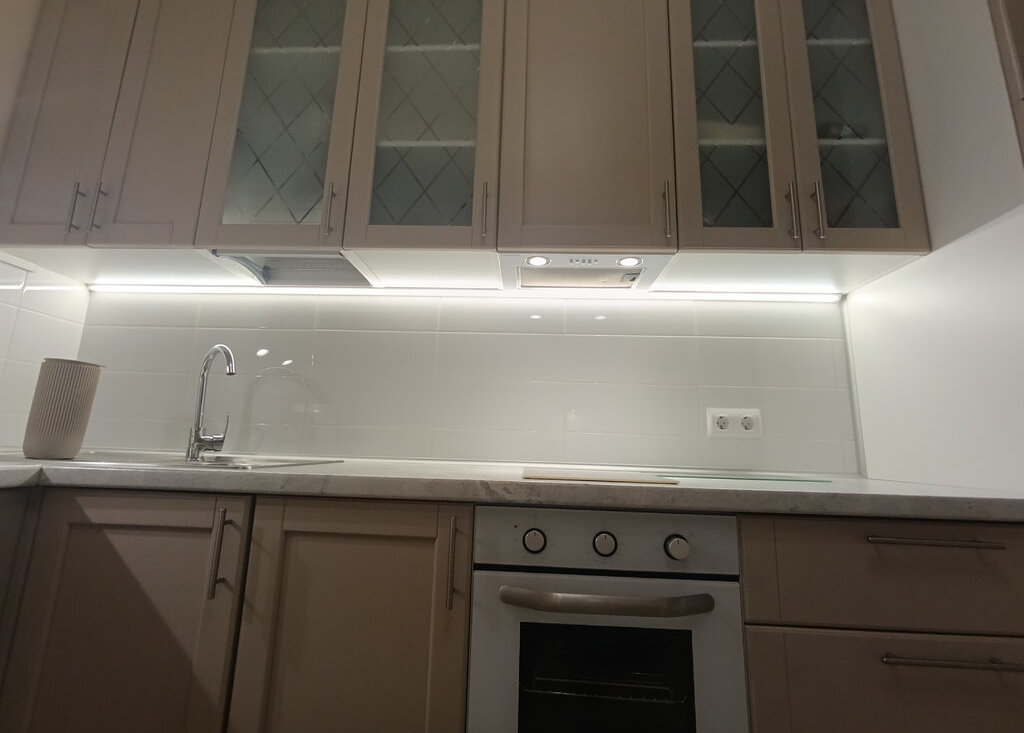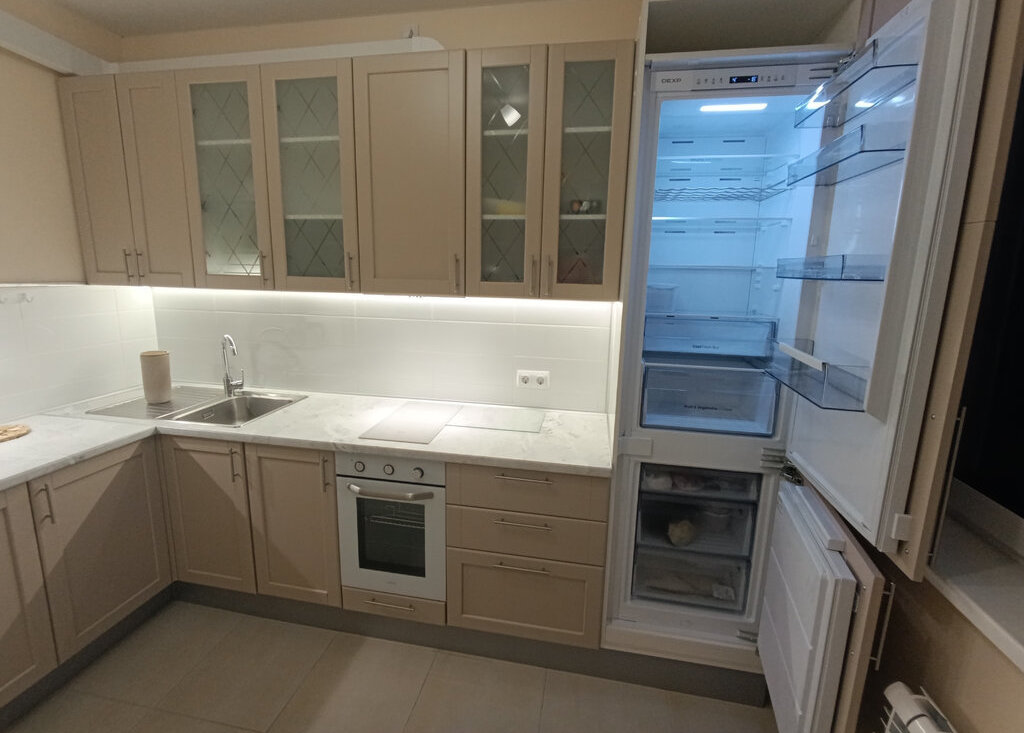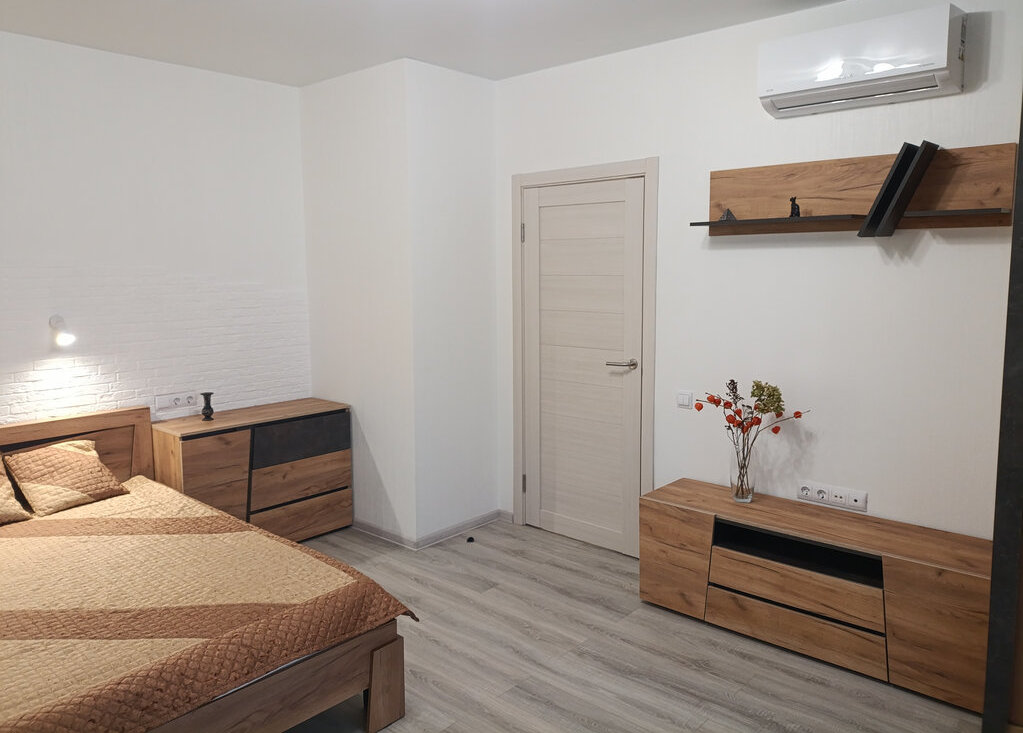 Вся техника новая: большой холодильник, индукционная варочная панель, духовой шкаф, чайник, посудомоечная машина, вытяжка, стиральная машина, проточный водонагреватель, мощный кондиционер. Вся мебель так же новая, включая матрас.