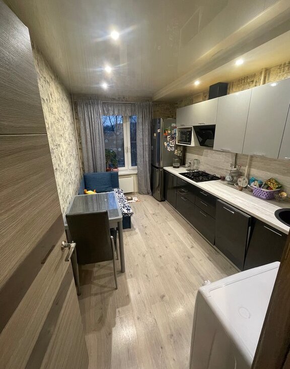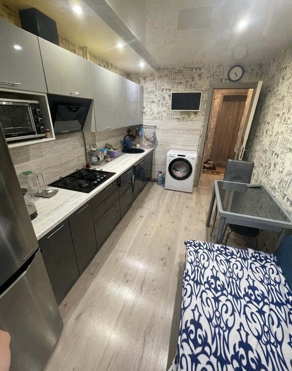 В квартире большая кухня и своя встроенная гардеробная, имеется застекленный балкон , со встроенным шкафом для удобного хранения. По нынешним стандартам можно отнести данный вид квартиры к евродвушке. В стоимость входит вся мебель и техника. Заехал и живи. Развитая инфраструктура: рядом детский сад, школа находится со стороны двора, дорогу переходить не нужно.В самом доме: аптека, универсам, ремонт бытовой техники, прием мед.анализов.
