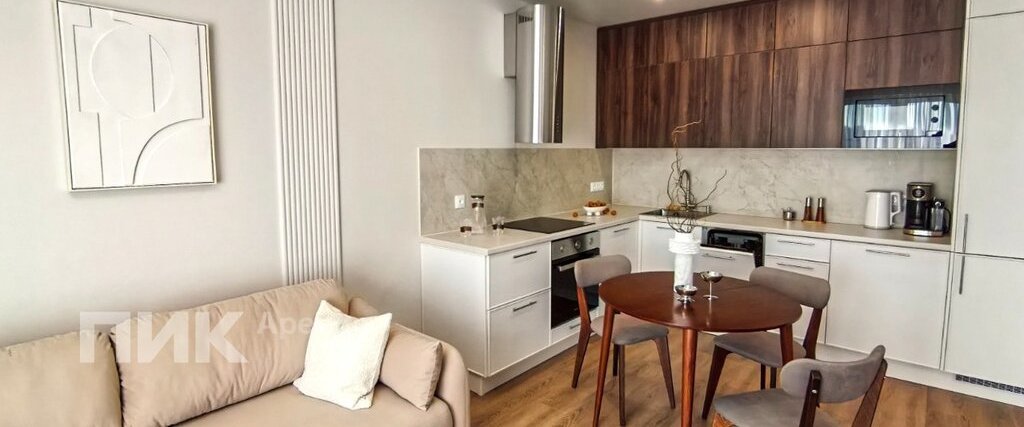 Квартира оборудована кухонным гарнитуром, мебелью и бытовой техникой.