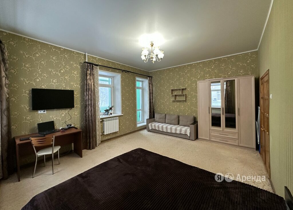 Сдаётся 1-комнатная квартира площадью 56 кв.м. с дизайнерским ремонтом на 2 этаже в 5-этажном доме на срок от 11 месяцев. Из техники есть:
