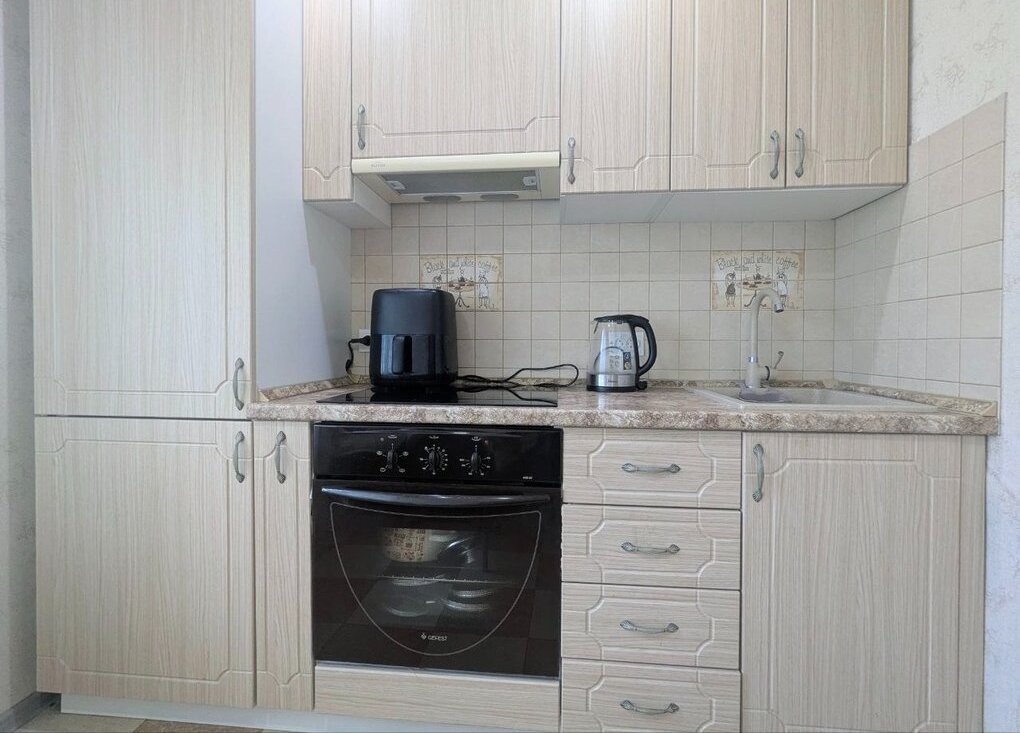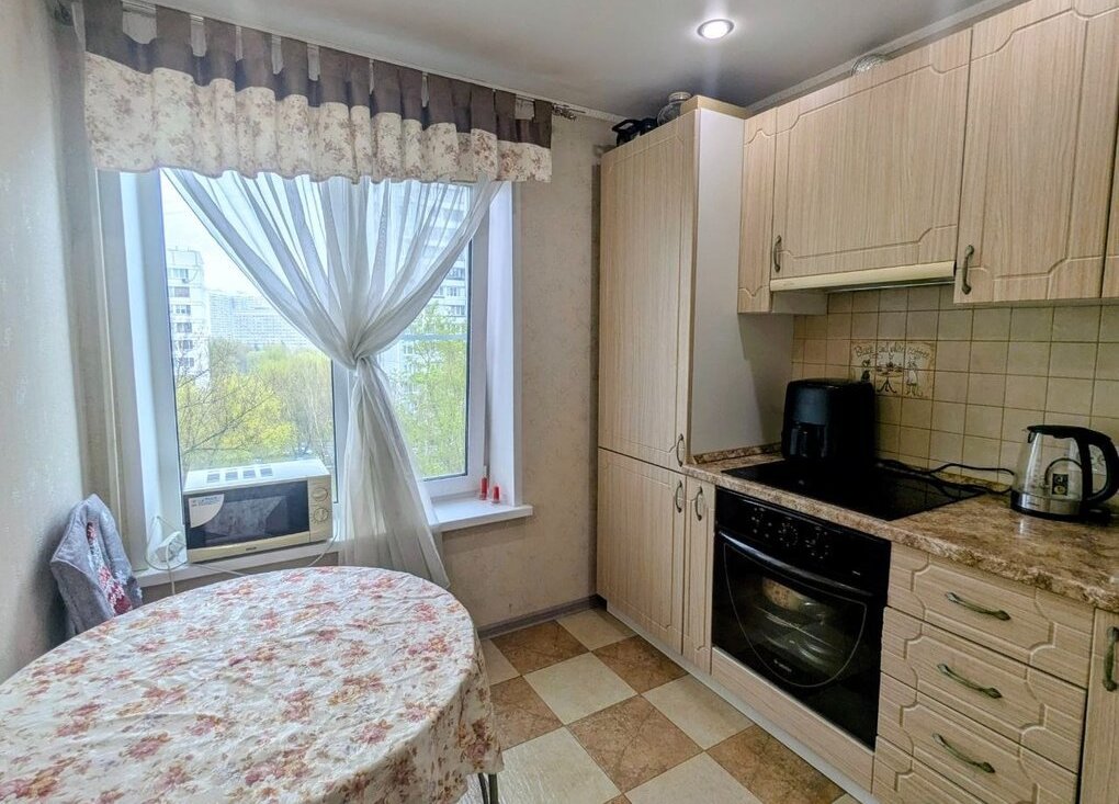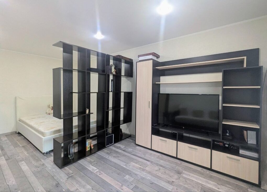 Квартира в идеальном состоянии. В квартире есть двухспальная кровать, малогабаритный диван, стеллаж, шкаф для одежды, мебель на кухне, большой телевизор, стиральная машина-автомат, холодильник, встроенная варочная панель и духовой шкаф, микроволновая печь, чайник. Лоджия застеклена. Солнечная сторона, квартира теплая, светлая, зимой очень тепло.