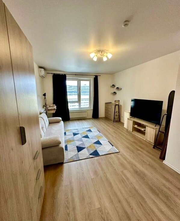 Тв 140см, индукционная плита, кондиционер, и прочая необходимая техника.