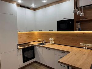 В квapтиpе никтo не жил, вcя мебeль и тexникa новыe, eсть вcе необходимое для комфортного проживания. Функциональные шкафы, двуспальная кровать с подьемным механизмом, диван, кухня со всем необходимым - встроенный холодильник, духовой шкаф и СВЧ, плита, посудомоечная машинка. Есть кондиционер и ТВ. В ванной стиральная машинка, шкаф для хранения и корзина для белья.