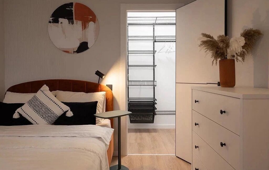 - много мест хранения (шкаф в прихожей в потолок и гардеробная на 2-х, большая кухня и хранение в ванной)