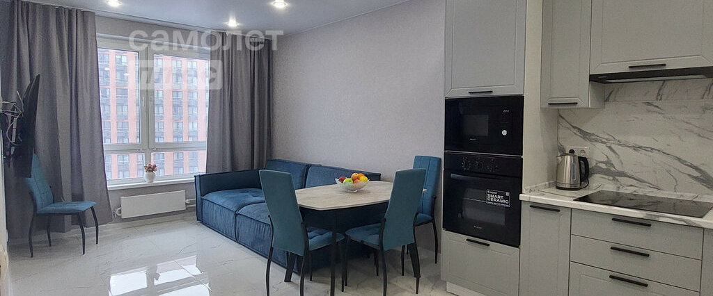 В квартире выполнен качественный ремонт и имеется всё необходимое для комфортного проживания. На кухне и в комнате установлена новая, современная мебель и техника.