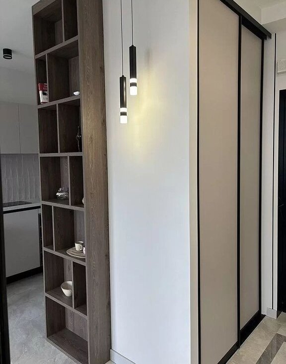 В прихожей имеется вместительный шкаф с хозяйственной частью.