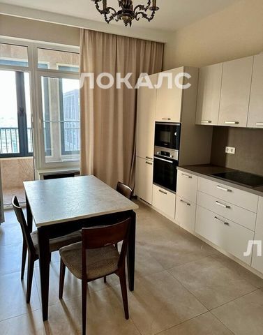 В кухне качественный гарнитур(от "Стильные кухни"), микроволновка, духовка Bosch, варочная панель, скрытая вытяжка, смеситель Omoikiri, посудомоечная машина, холодильник красиво скрыт гарнитуром, обеденный стол на четверых.