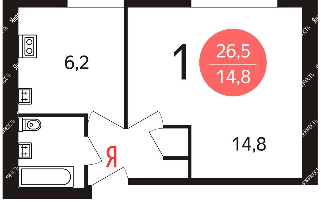 1-комнатная квартира: Москва, Профсоюзная улица, 91к1 (30 м²)