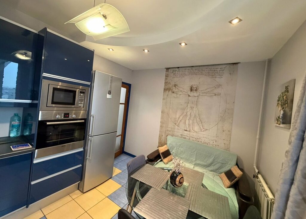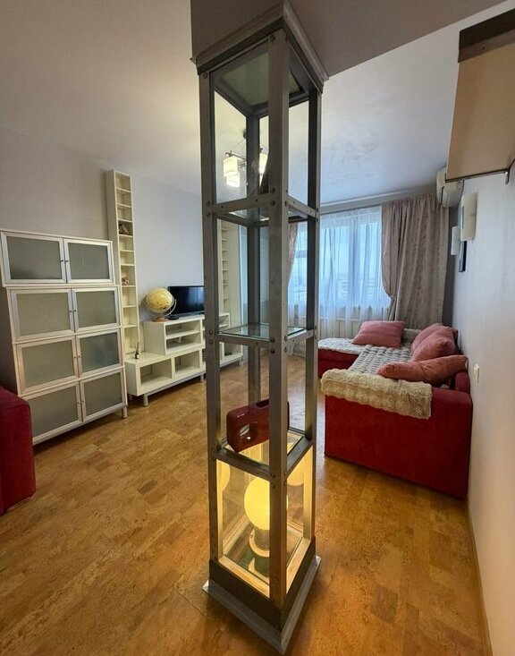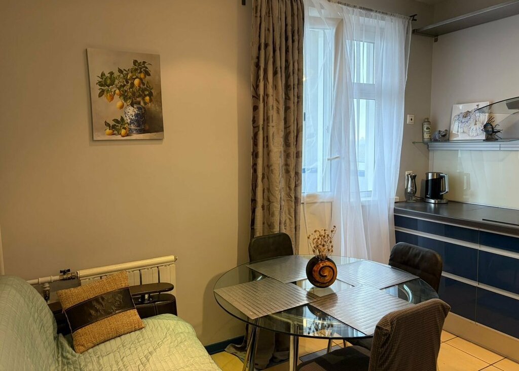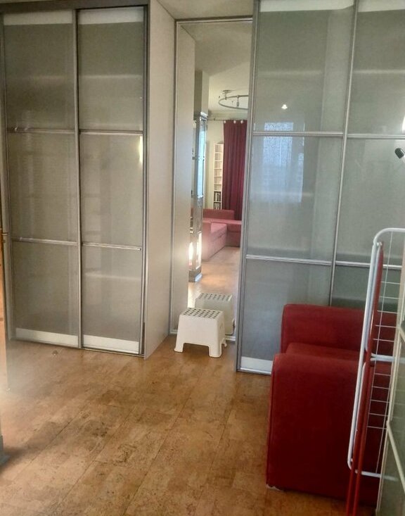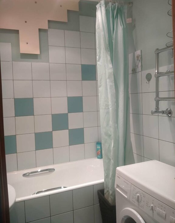 Уютная, много мест для хранения вещей (встроенные шкафы в комнате). Дорогая бытовая техника Bosch и Siemens. Удобный диван на кухне, раскладывается. Выход на чистый балкон из кухни.