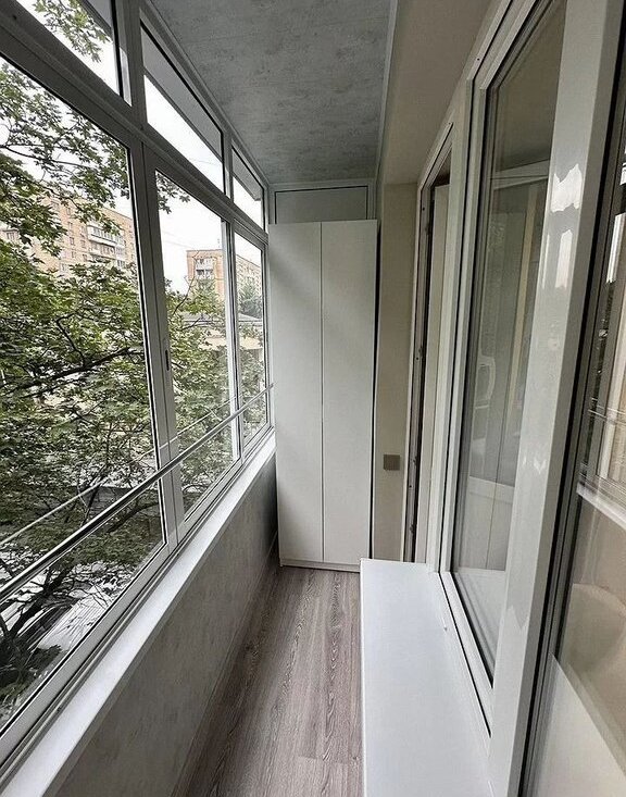 Балкон заcтеклен, стоят моcкитныe ceтки.