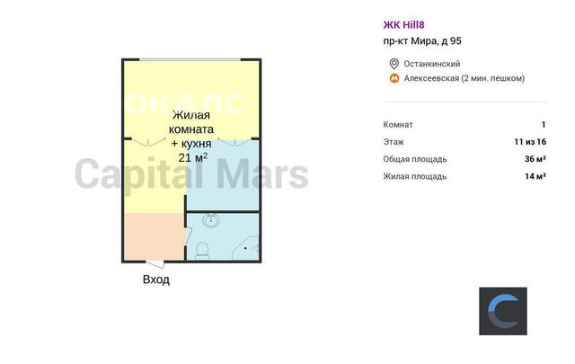 1-комнатная квартира: Москва, проспект Мира, 95 (36 м²)
