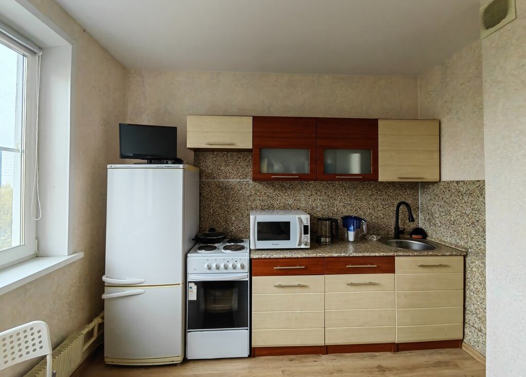 Свежий ремонт. Сделан полный клининг с химчисткой мягкой мебели. Новая техника: Телевизор 50 дюймов, пылесос. Только что установлен новый кондиционер. Есть стиральная машина, холодильник, электрическая плита, микроволновая печь, два телевизора, электрический чайник, пылесос, утюг, гладильная и сушильная доски. Качественная мягкая мебель в комнате и на кухне. Большая кухня (на кухне стоит полноценный раздвижной двуспальный диван).