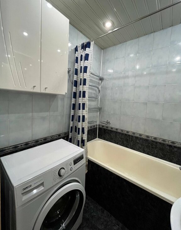 Стиральная машина в ванной.