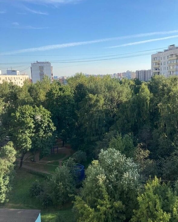Окна квартиры смотрят во двор, летом очень зелено.