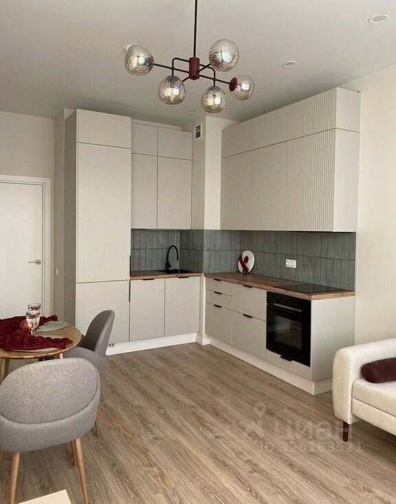 Современная квартира 42 кв.м. с высокими потолками, функциональной планировкой, уютной спальней и просторной кухней-гостиной. Полностью оборудована абсолютно новой встроенной техникой и всем необходимым для комфортного проживания.