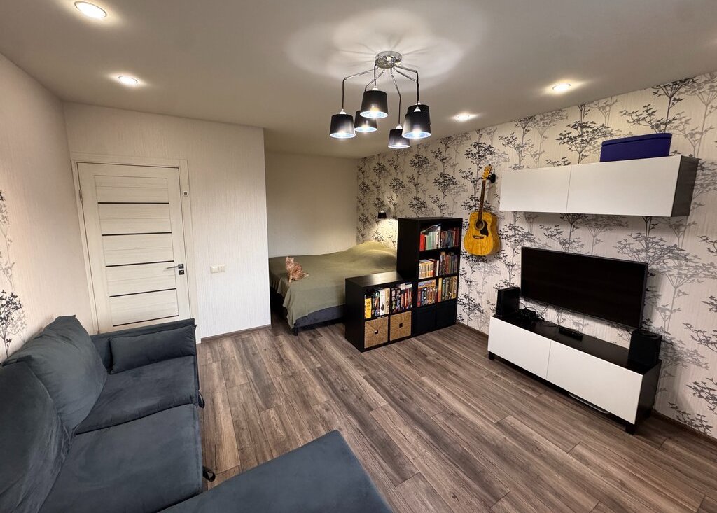 Квартира имеет просторную комнату площадью 20,9 м² с выходом на застекленную лоджию, которая расширяет полезное пространство и наполняет жилье естественным светом. Из окон открывается панорамный вид на улицу. Санузел раздельный с современной сантехникой и отделкой.
