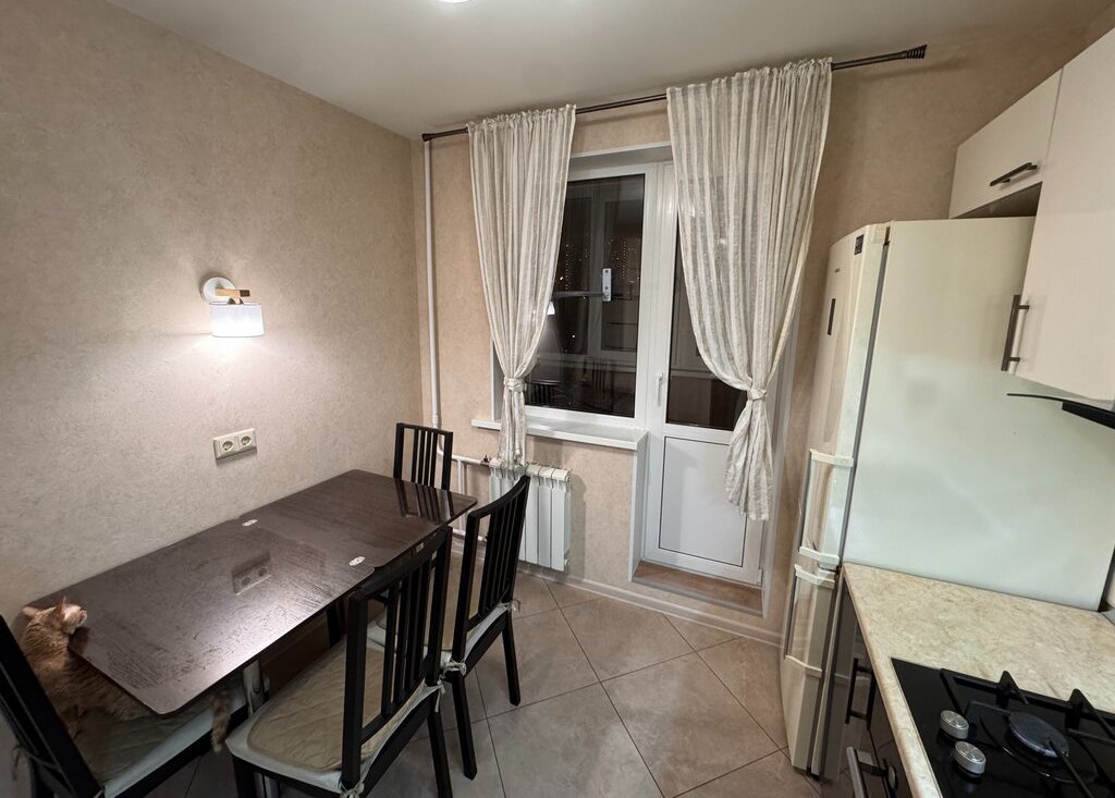 Продается уютная однокомнатная квартира с хорошим ремонтом в Москве. Общая площадь 39,1 м², а также 2 раздельные застеклённые и обшитые лоджии с выводом электричества: с доступом из комнаты площадью 4 м² и с доступом из кухни площадью 3 м². Квартира находится на 4-м этаже 12-этажного панельного дома серии П-47 1976 года постройки с недавним полным капитальным ремонтом 2019-2024 гг.