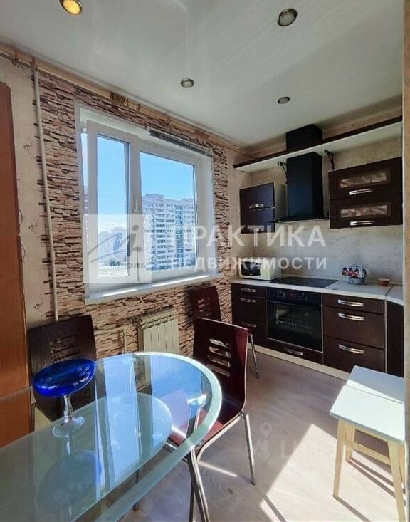 Квартира сдается с мебелью и техникой, полностью обустроена для проживания. Кухонный гарнитур укомплектован варочной панелью, духовым шкафом, холодильником, микроволновкой, чайником и необходимой посудой.