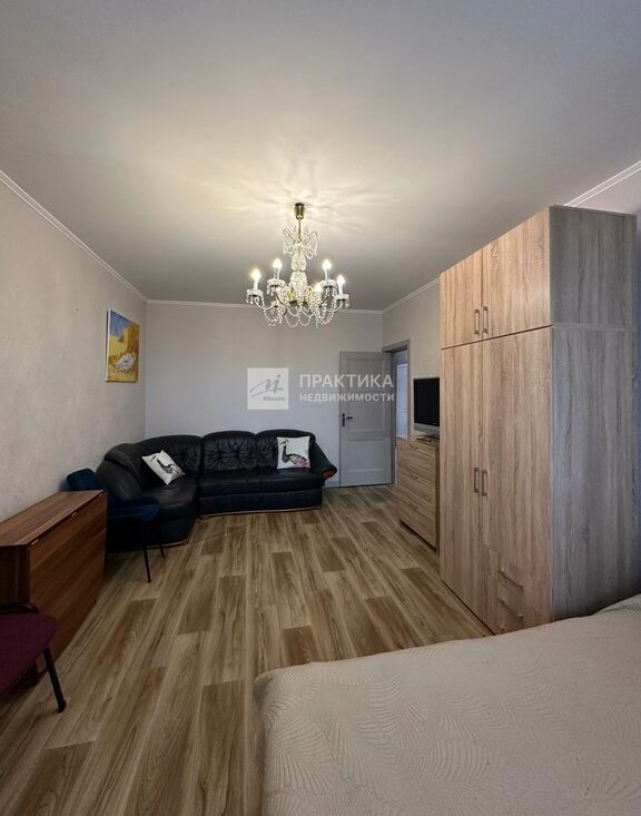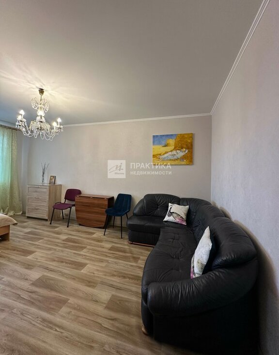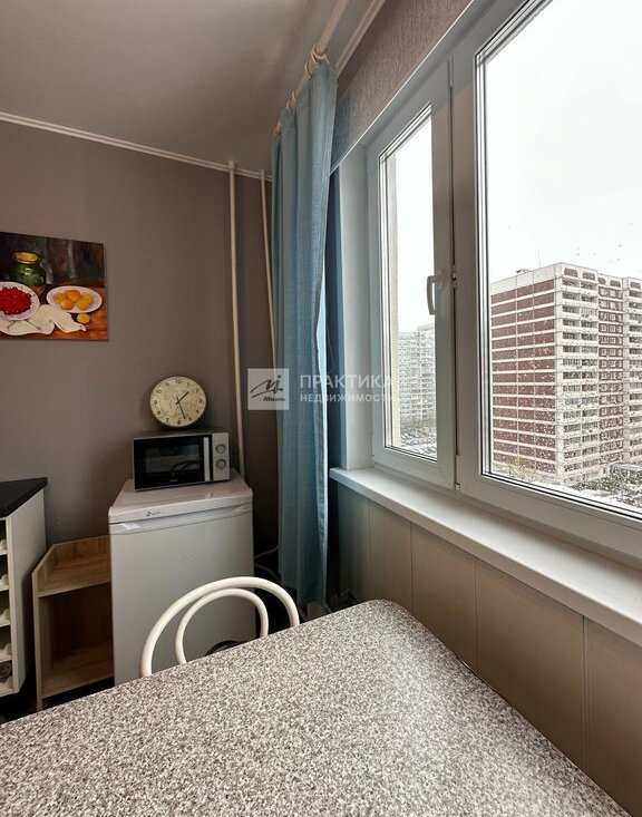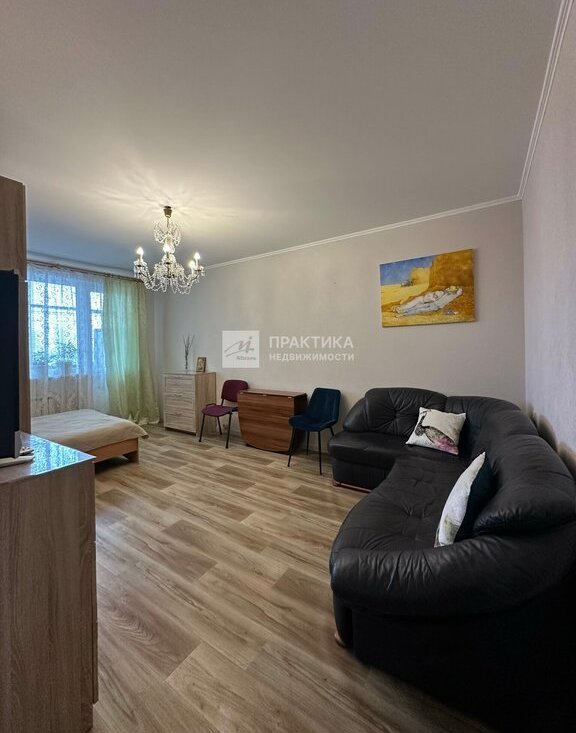 Просторная однокомнатная квартира общей площадью 42.8 кв. м на 9-м этаже 17-этажного панельного дома 1985 года постройки.