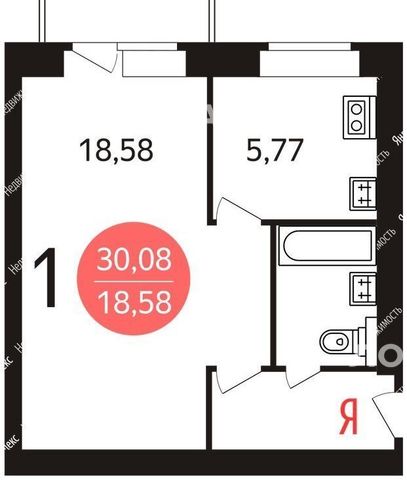 1-комнатная квартира: Москва, Рубцов переулок, 16с1 (30.08 м²)