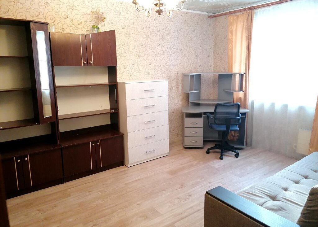 В комнате 2 ва раскладных дивана, компьютерный стол с креслом, шкаф, комод.