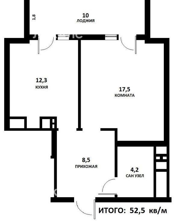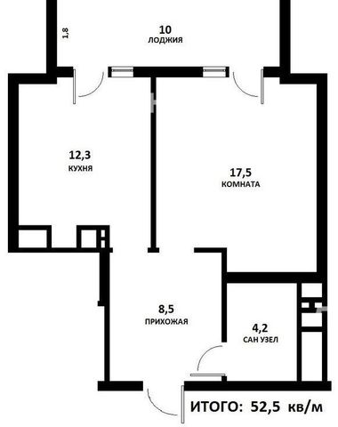 (комната+прихожая+кухня+сан.узел) по выписке из ЕГРН 42.5 + лоджия 10м