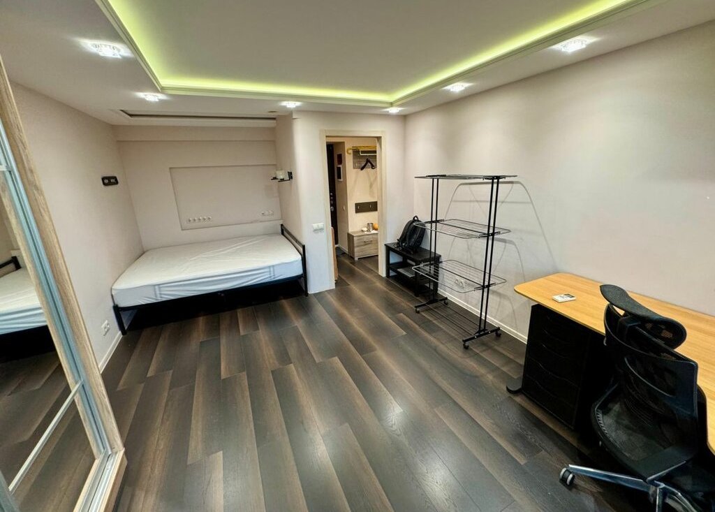 Номер объекта: 540374. Уютная современная квартира со всей необходимой мебелью и техникой, включая двуспальную кровать, рабочее место, кондиционер, духовку, посудомоечную машину.