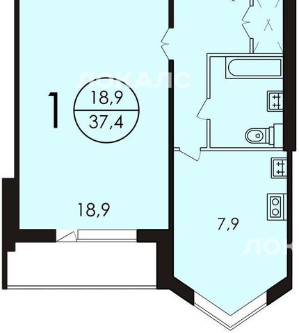 1-комнатная квартира: Москва, Селигерская улица, 26к1 (37.4 м²)