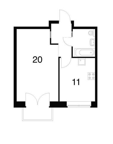 • Общая площадь квартиры 39м2: комната – 20м2, кухня – 11м2, ванная – 3,6м2. Все комнаты изолированы.