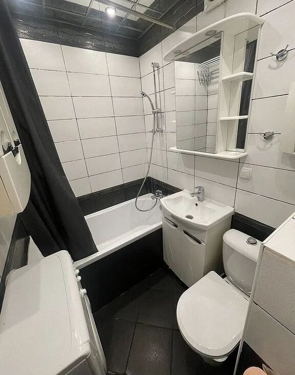 Санузел совмещенный, оформлен в современном стиле, имеется стиральная машинка. Балкон застекленный, с видом на город. Парковка открытая во дворе. В пешей доступности 2 торговых центра и метро Крымская.