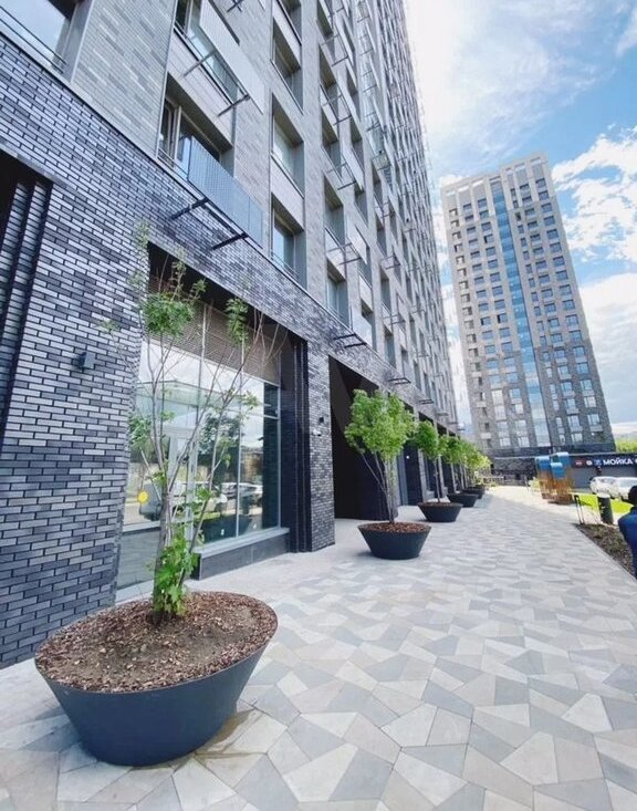 Презентабельная отделка входной группы и лаконичный дизайн мест общего пользования.