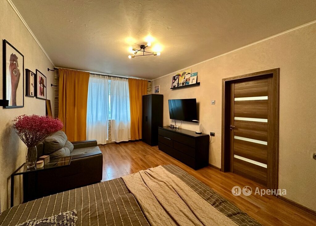 Сдаётся 1-комнатная квартира площадью 38 кв.м. с евроремонтом на 4 этаже в 14-этажном доме на срок от 11 месяцев. Из техники есть: