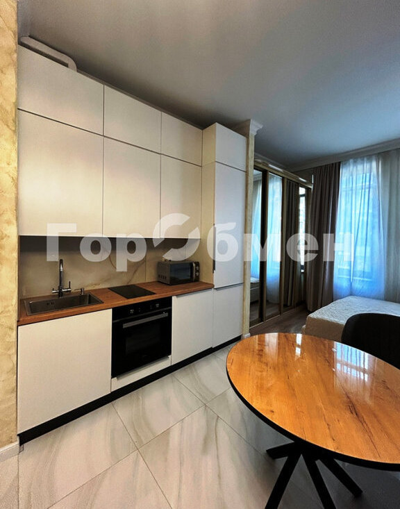 Студия имеет общую площадь, 30 кв.м., с выходом на закрытый двор со спортивными и детскими площадками. Полностью оборудована всем необходимым для комфортной жизни.