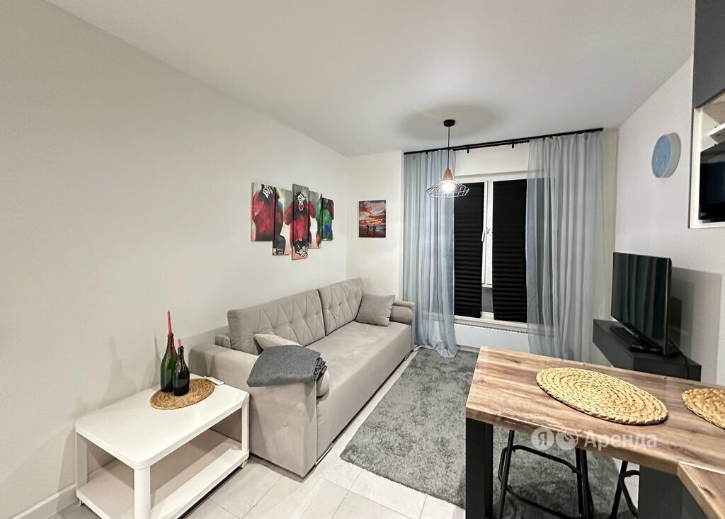 Сдаётся 1-комнатная квартира площадью 40 кв.м. с евроремонтом на 2 этаже в 33-этажном доме на срок от 11 месяцев. Из техники есть: