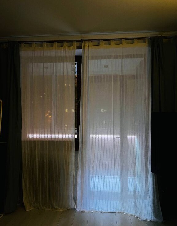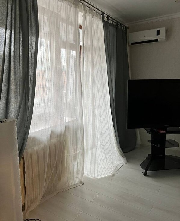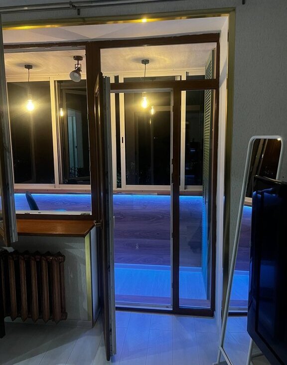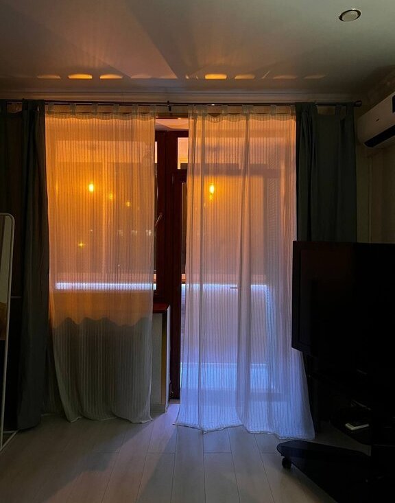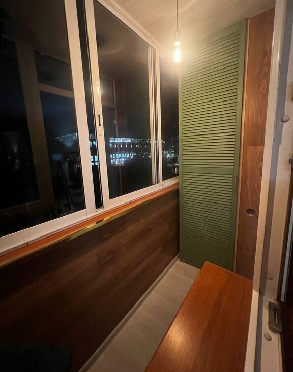 Окна выходят на тихий зелёный двор; в квартире лоджия (стеклопакеты) сделана под лаунж-зону; стены толстые, слышимость минимальная, соседей не слышно ни с каких сторон.