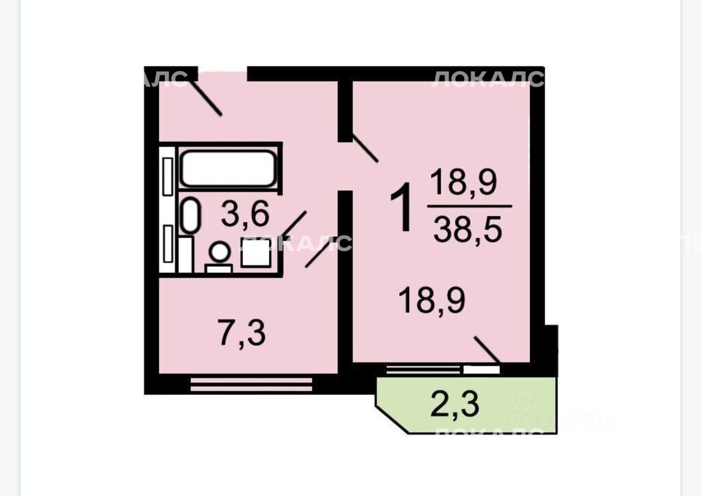 1-комнатная квартира: Москва, Смольная улица, 51к3 (40 м²)
