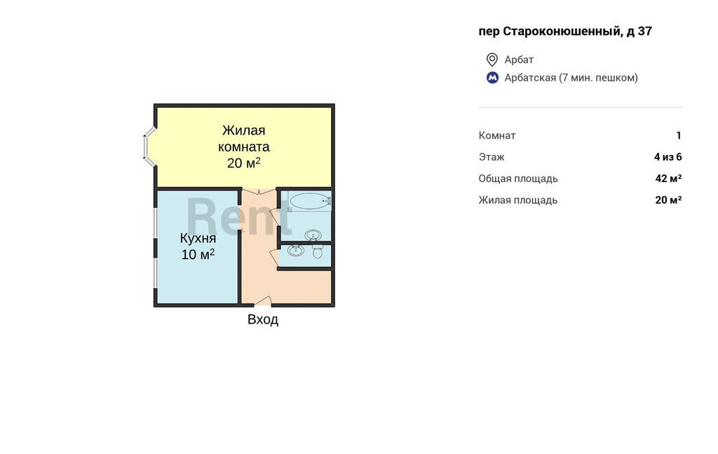 1-комнатная квартира: Москва, Староконюшенный переулок, 37 (42 м²)