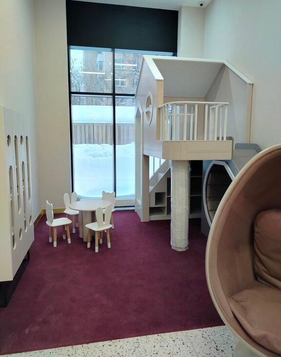 - современное лобби с зоной ожидания, детской комнатой и туалетами
