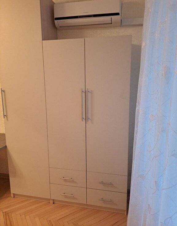 В комнате удобные шкафы, учебно-рабочее место, раскладной большой двухспальный диван и отдельная кровать для ребенка или отдыха, кондиционер, разные зоны света.