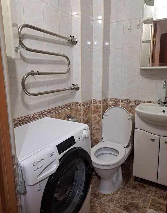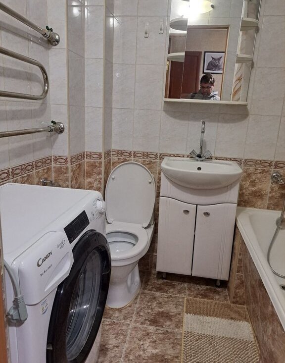 В ванной полностью работающая сантехника и стиральная машина с большой загрузкой до 8 кг. И самое главное - ванная! Хочешь отдохнуть в теплой ванной с пеной и "бомбочкой"? Легко! В прихожей отдельная кладовая (не нужно думать куда убрать зимние вещи и обувь). Большая застекленная лоджия со шкафом для хранения. Застекленная лоджия на 9 кв.м., где летом можно пить чай, или хранить велосипед.