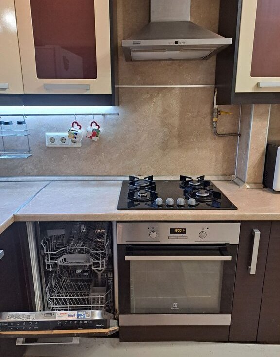 В большой кухне раскладывающийся диван напротив большого плазменного телевизора (45 дюймов) с кучей бесплатных цифровых каналов, отдельная обеденная зона. Для ваших кулинарных шедевров варочная газовая панель, посудомоечная машина (хватит мыть горы самому после гостей), большой холодильник, духовой шкаф, микроволновая печь, чайник, фильтр воды (блоки фильтров менялись месяц назад).