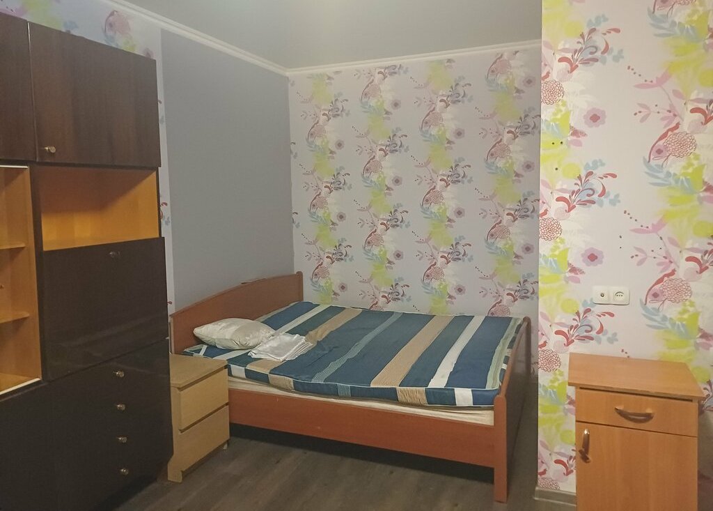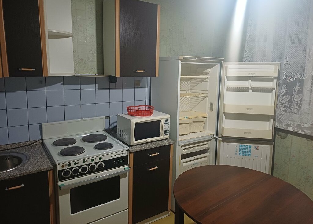 Просторная комната, можно выделить зону отдыха, рабочее место. В комнате:2 спальная кровать, стенка, журнальный стол, стулья. На кухне: встроенный кухонный гарнитур, 2 камерный холодильник, микроволновая печь, стол, и ещё одно спальное место- 1 спальная кровать.Ищолированный санузел, стиралтная машина- автомат.Оборудованная прихожая.Квартира готова к показам и к заселению. Рассмотрим всех приличных.Можно с культурными животными. Оперативно покажу.