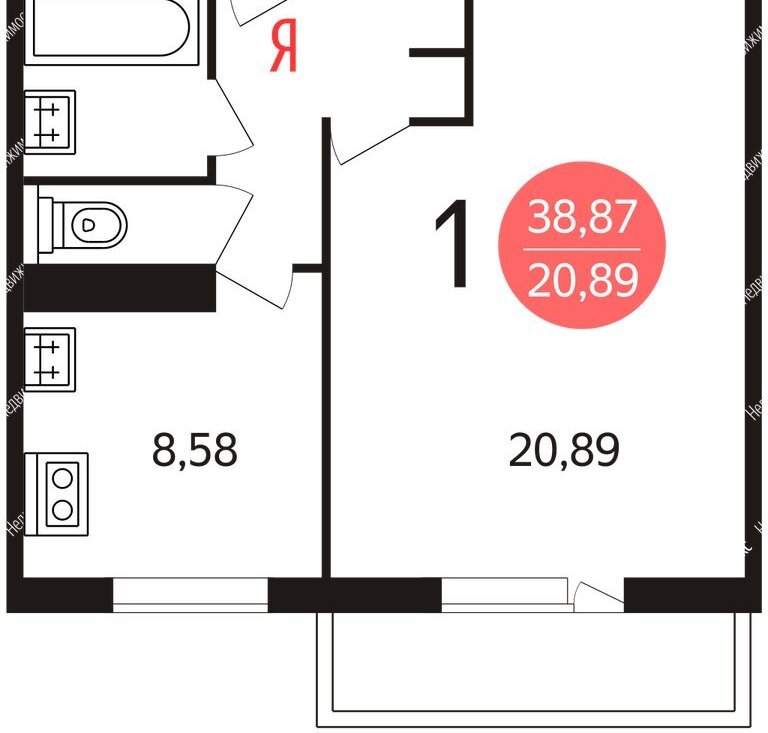 1-комнатная квартира: Москва, Стрелецкая улица, 9к2 (38.87 м²)