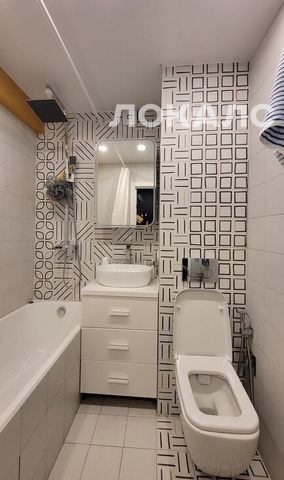 В квартире сделан дизайнерский ремонт, использованы дорогие отделочные материалы. Перепланировка узаконена. Планировка сделана в виде студии, между кухней и жилой комнатой раздвижная перегородка, балкон утеплен.